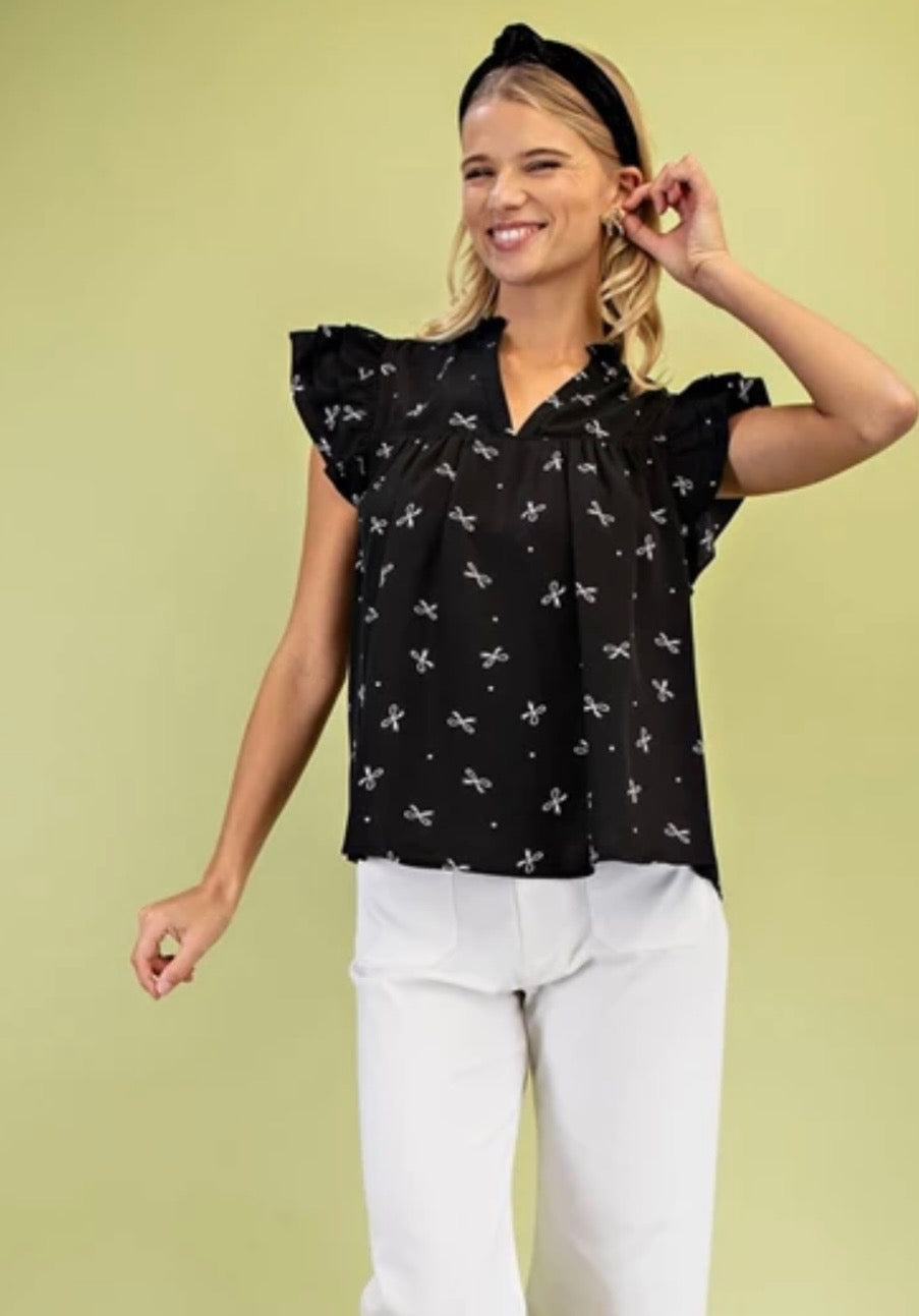 Black and white bow top