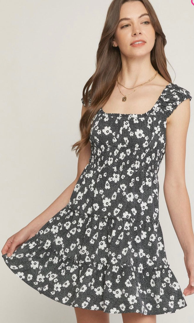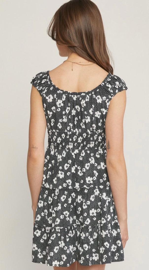 Black and white floral mini dress