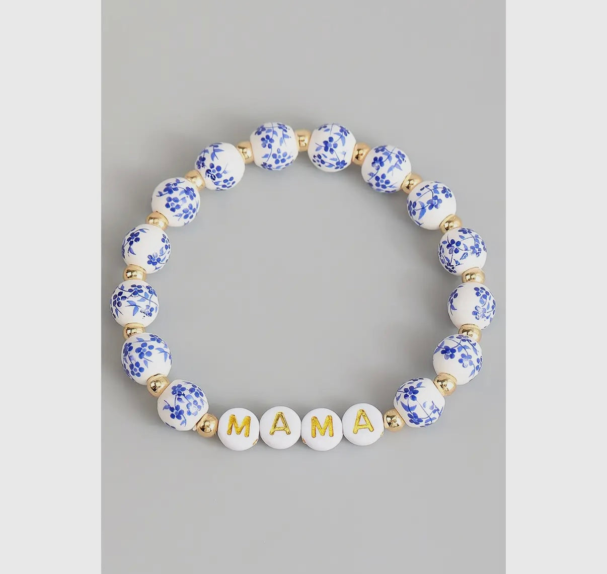 Blue and white beaded mama bracelet
