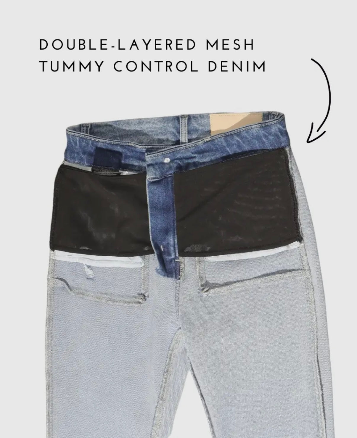 Distressed hem tummy control jeans