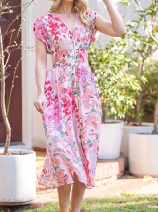 Floral zipper detail midi dress