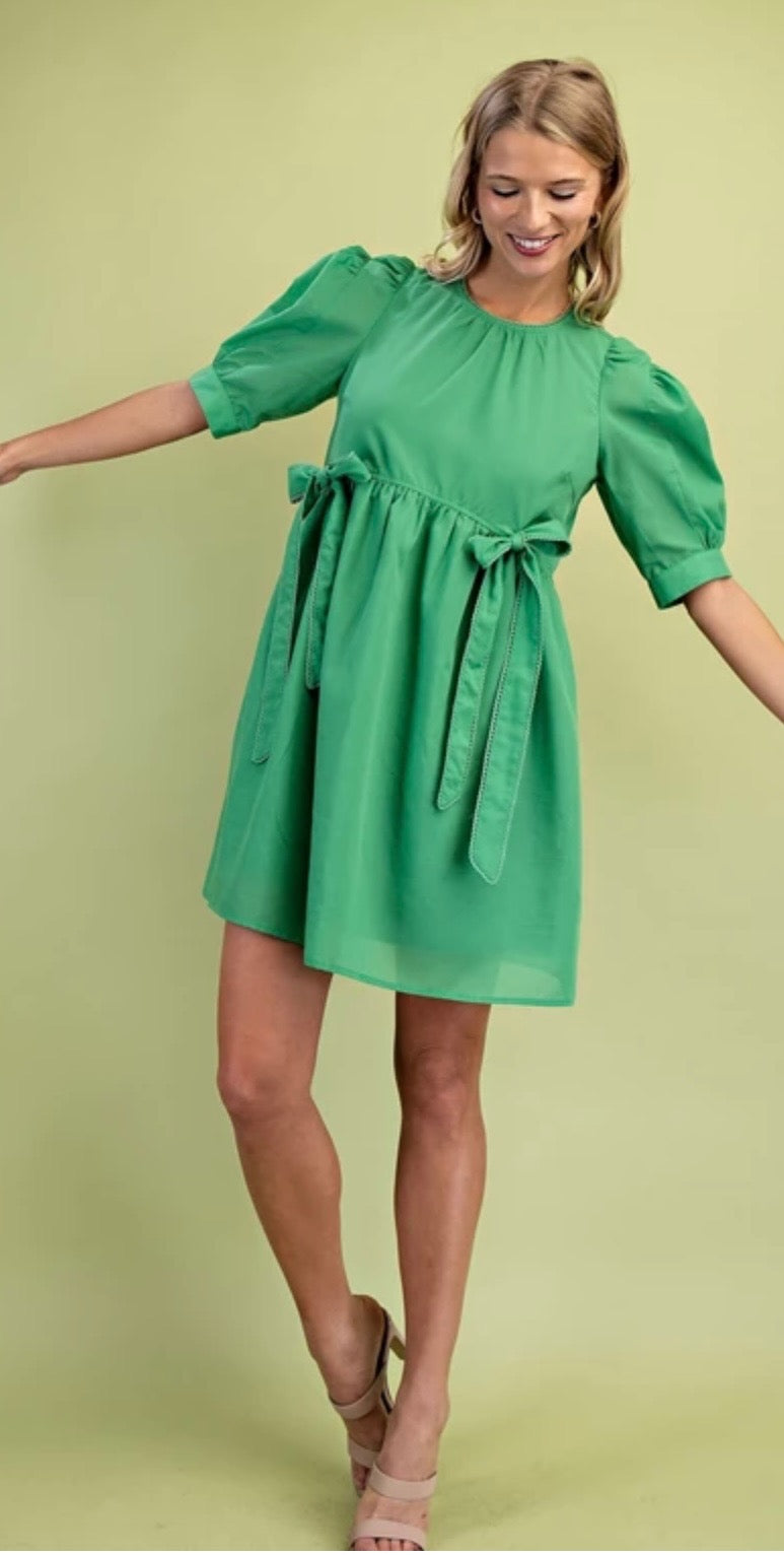 Green bow front mini dress