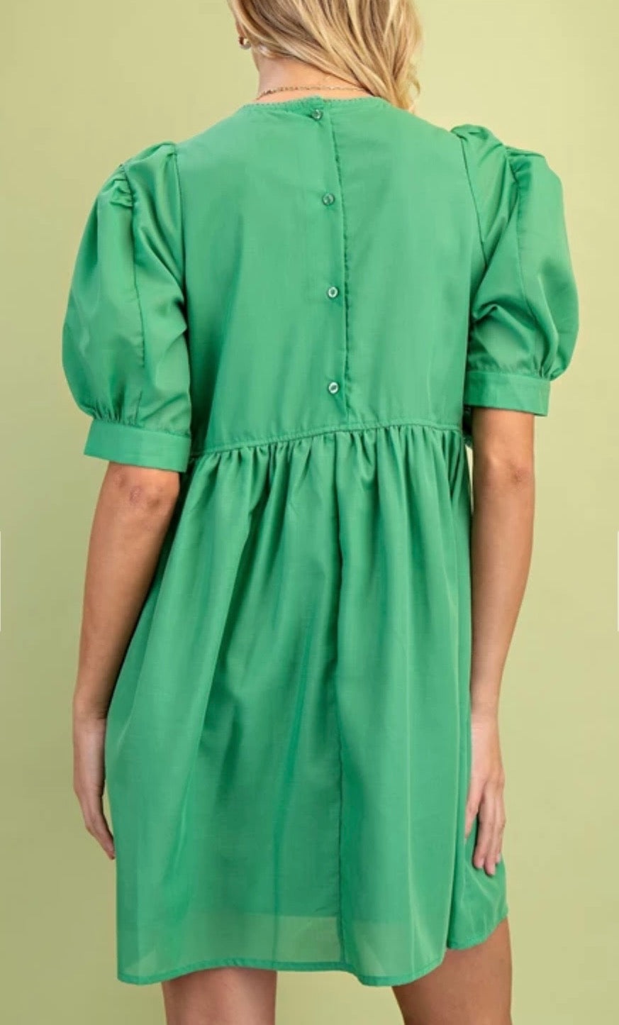 Pockets, puff sleeves, button up back detail