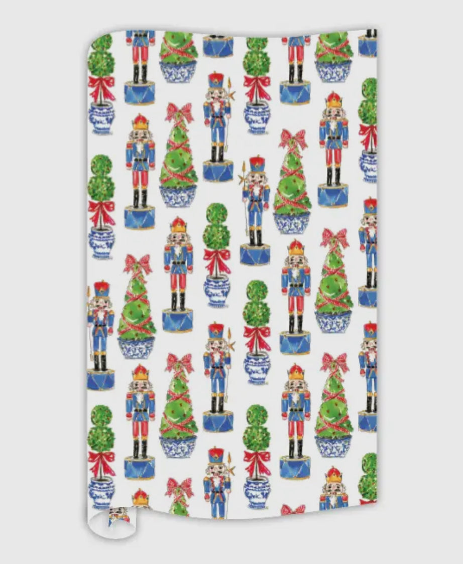 Rosanne Beck Nutcrackers with topiary trees wrapping paper