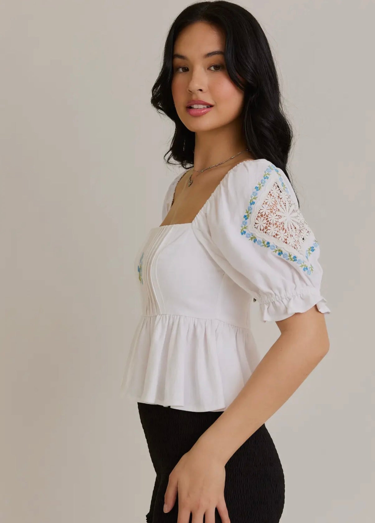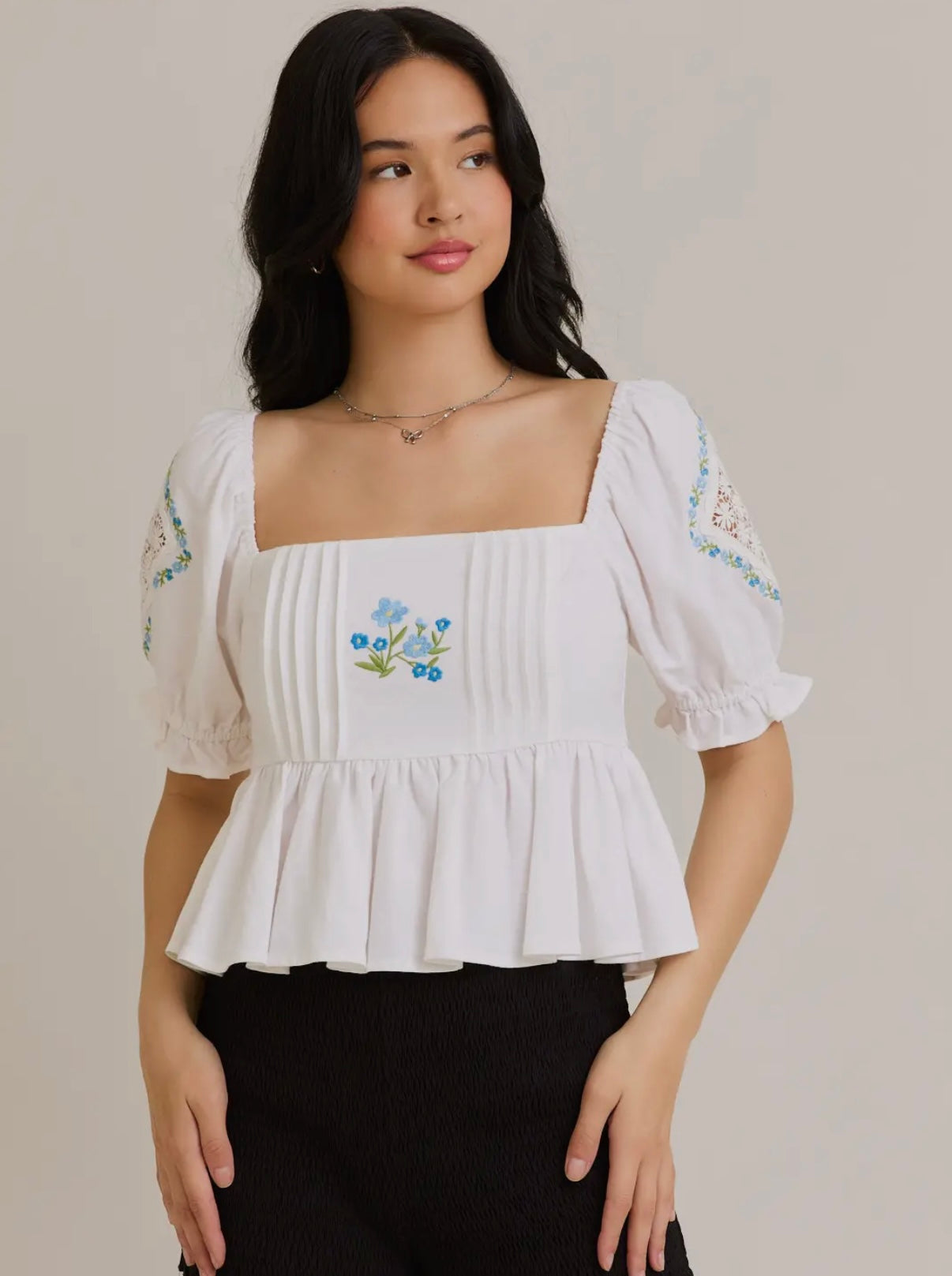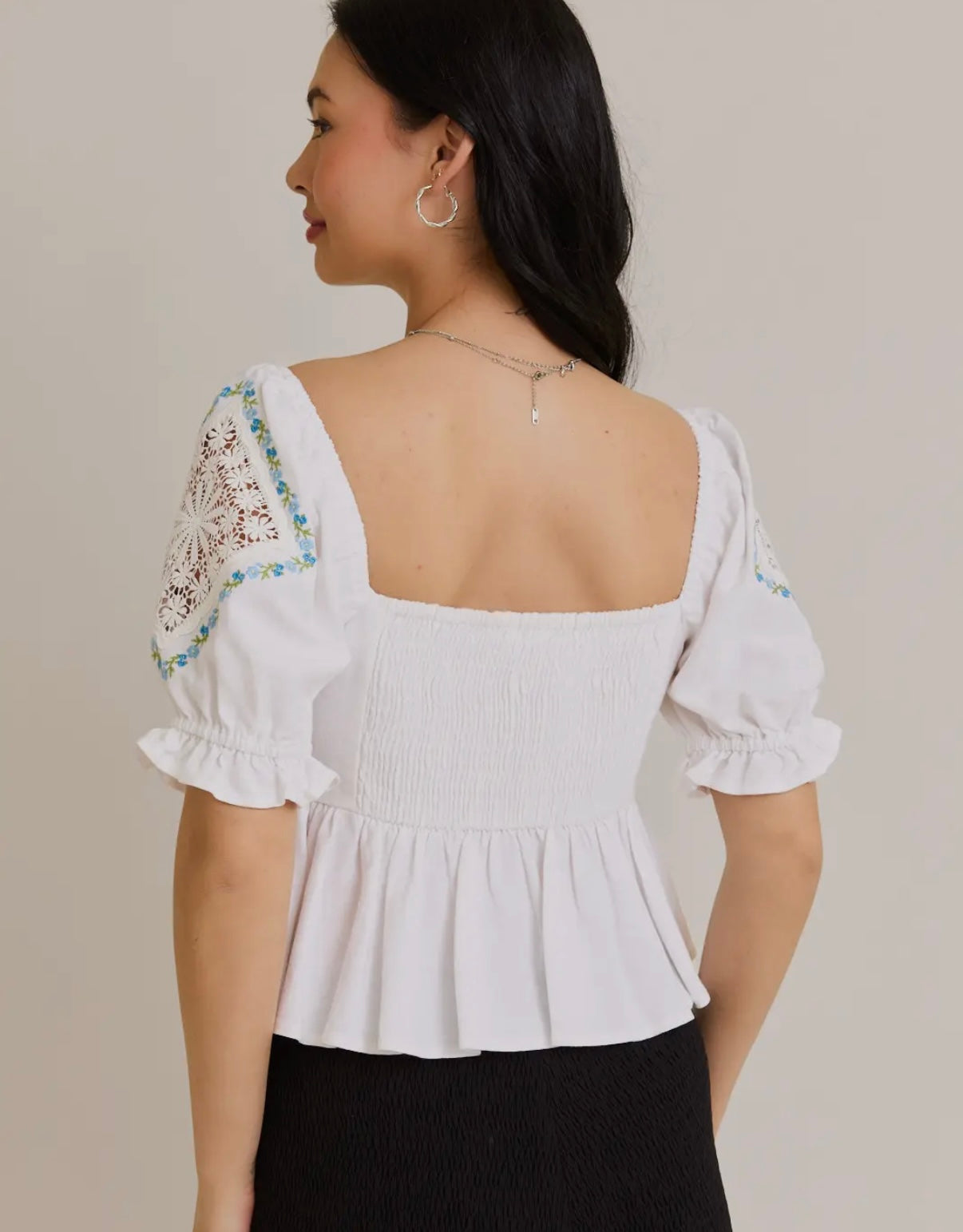 White babydoll embroidered top