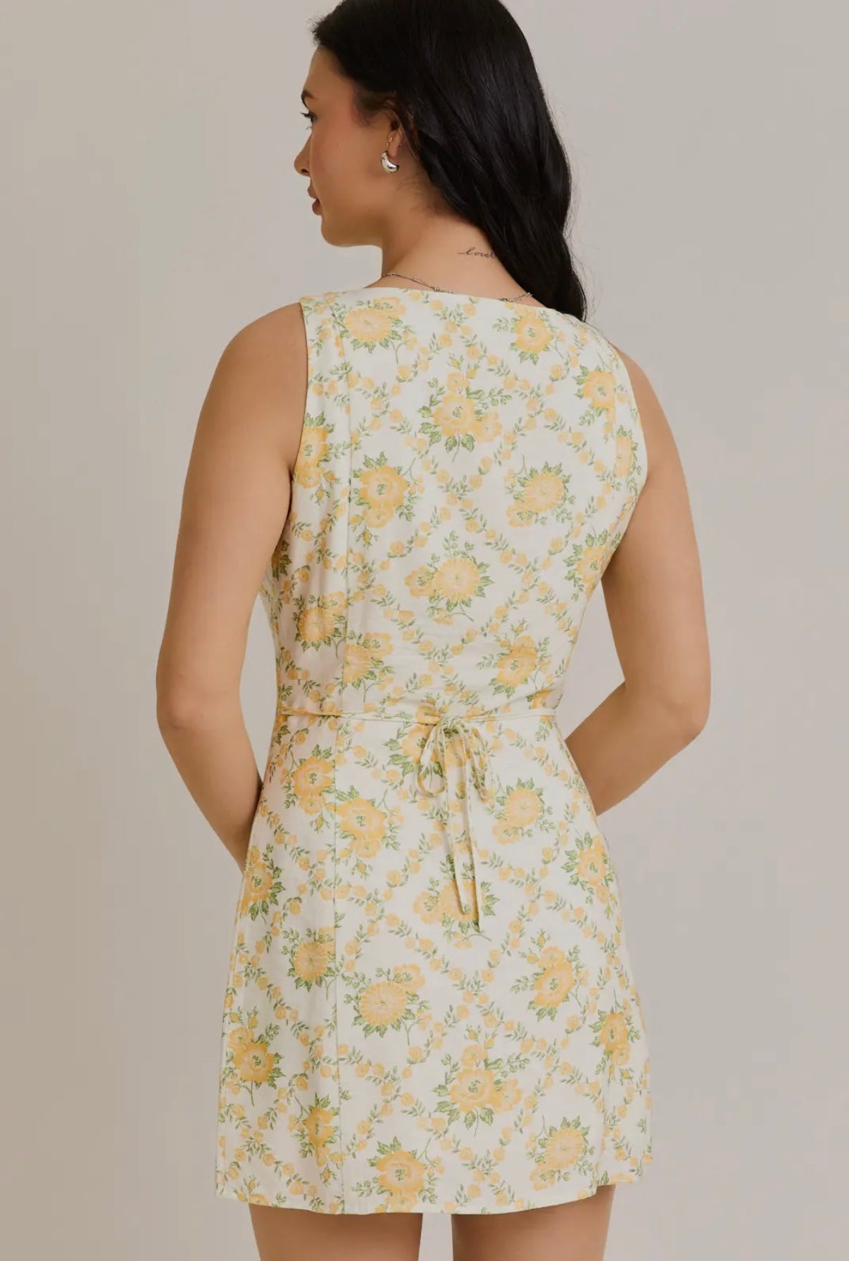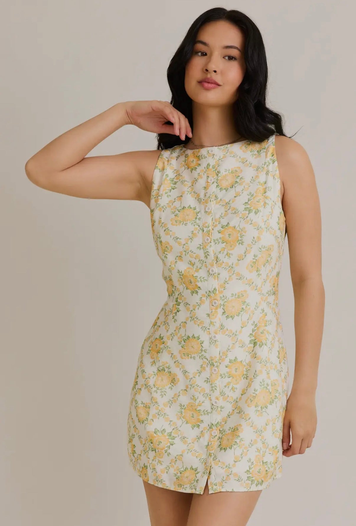 Yellow floral button up dress